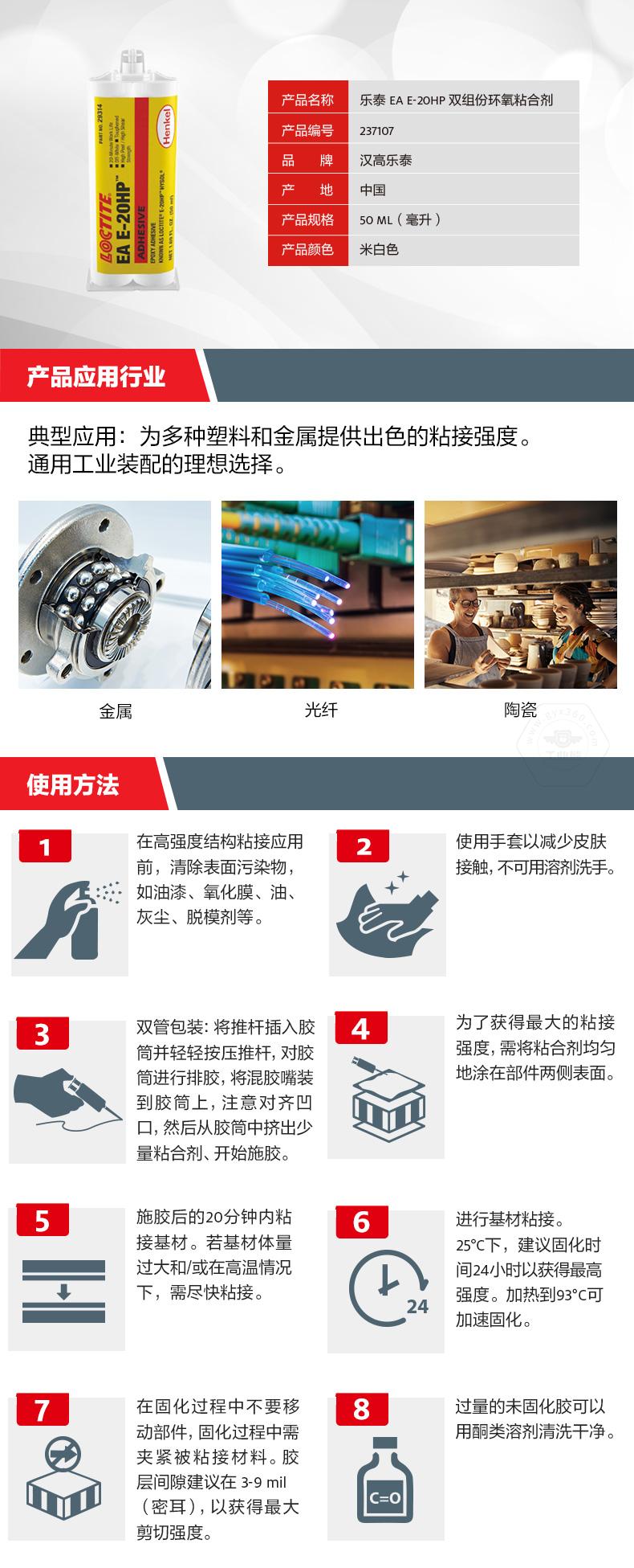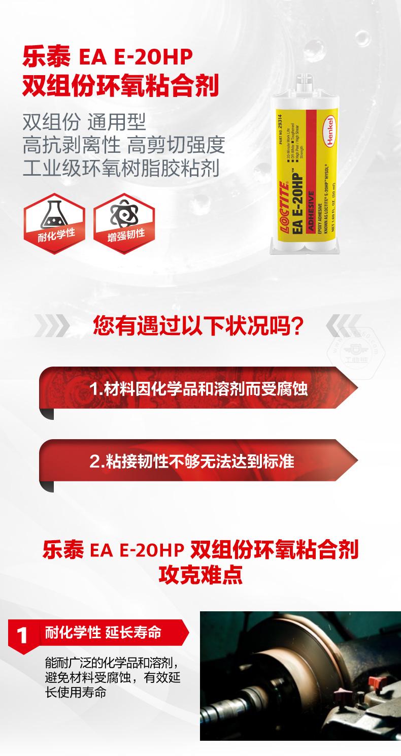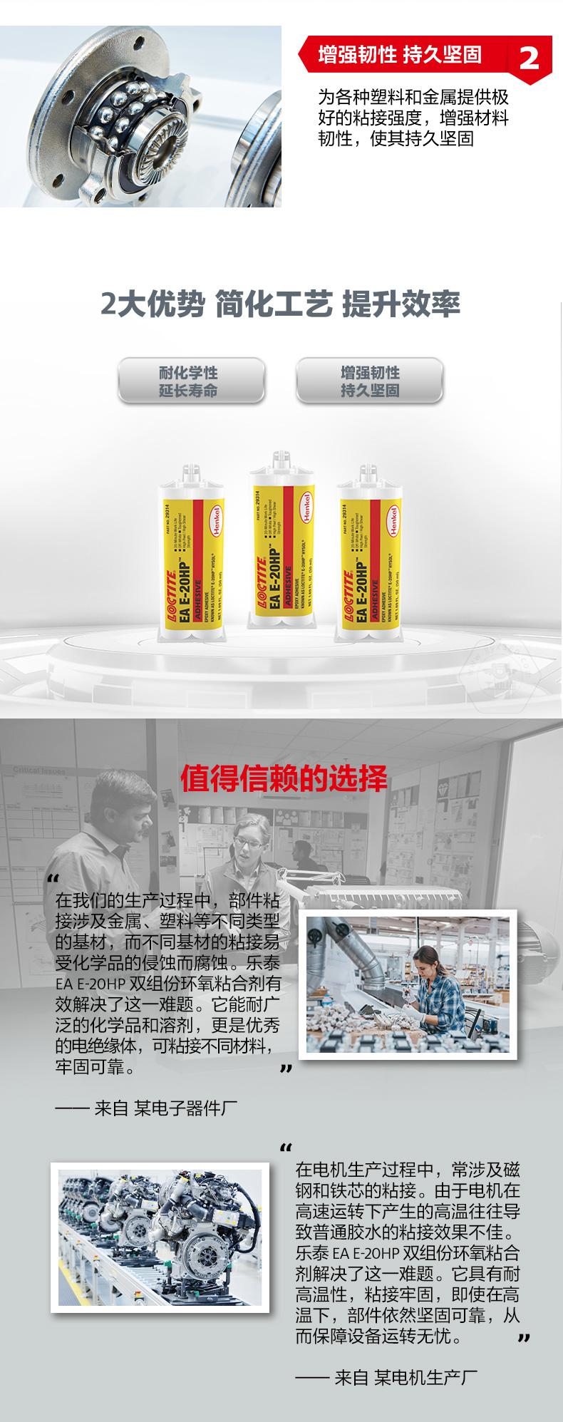 乐泰EA E-20HP双组份环氧粘合剂是一款双组份、通用型工业级环氧树脂胶粘剂。乐泰EA E-20HP双组份环氧粘合剂具备高抗剥离性、高剪切强度、耐化学性和增强韧性,可为多种塑料和金属提供出色粘接强度。乐泰EA E-20HP双组份环氧粘合剂适用于金属、光纤、陶瓷等材料,是通用工业装配的理想选择。
